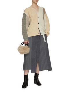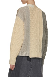 KURO 运用现代美学打造四季皆宜、历久弥新的常青服饰。这款开衫采用经典 V 领纽扣开襟,并以不同的麻花纹理拼接出幻觉层次。