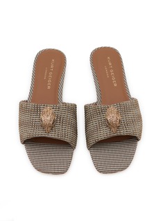 Kurt Geiger 1963 年诞生于伦敦邦德街,以“让奢侈品不再高高在上”为使命。品牌将英伦朋克的铆钉、意式手工的楦型与纽约霓虹的配色大胆拼贴,用摇滚的态度证明:奢华,也可以很酷。这款拖鞋以仿钻和标志鹰头设计点亮你的质感夏日出街时光。