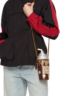 仿真杯身的立体肌理与趣味设计形成微妙共鸣,Kurt Geiger 的金属铆钉与淋边细节在低调中注入视觉层次,古铜链条优化了搭配的自由度,让这件单品既能适配派对的闪耀时刻,也能从容应对日常出街的多元场景。