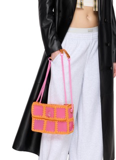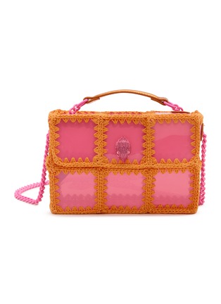 Kurt Geiger 这款手提包采用果冻感面料与撞色织线拼接而成。为你的穿搭融入色彩与材质的趣味碰撞。