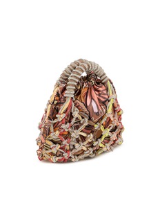 Kurt Geiger 以波西米亚编织美学重塑包袋形态,这款迷你水桶包甄选印花缎面内衬,满印抽象花卉交织出复古氛围,水钻编织网面注入华丽基因,抽绳束口设计释放随性腔调。