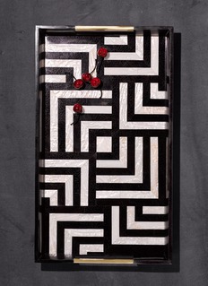 喜爱现代简约风格的你定不能错过这款L'OBJET的长方形托盘,乱中有序的黑白色天然贝壳拼出醒目抢眼的几何图案纹理,带来艺术与视觉享受,托盘两侧加入金色黄铜手柄,为整体设计添加了奢华亮丽一笔。