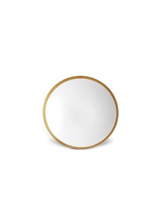 A modern expression of a classic French motif, the Soie Tressée collection from L’OBJET will enhance your sets with a silky polish. Rendered in smooth Limoges porcelain and trimmed with a braided rim, this soup plate's hand-gilded 24k gold border will elevate your most sumptuous dishes with perennial charm.