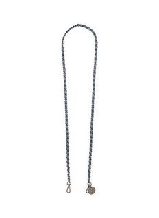 Elevate your accessory collection with La Coque Francaise's elegantly braided lanyard. This chic lanyard features a sophisticated blend of grey and blue hues, intricately woven to create a stylish and durable accessory. Perfect for securing keys or ID badges, it includes a practical clip and a charming engraved charm that adds a personal touch of refinement.