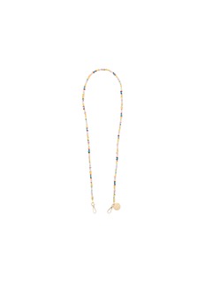 This LA COQUE FRANCAISE phone strap is a celebration of color and charm, featuring a delightful array of multicolored beads interspersed with golden accents. The vibrant hues range from soft pastels to rich, deep tones, creating a joyful and eclectic look. Complete with a signature charm and a secure clasp, this piece is perfect for adding a playful yet sophisticated touch to any outfit.
