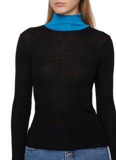 Rendered in jet black cotton rib, the Frederique top from LA FETICHE takes on a bolder edge with its vivid blue polo-style neckline. Semi-sheer and form-fitting, it is ideal for layering—whether peeking beneath a blazer or styled solo for a sleek, graphic contrast.