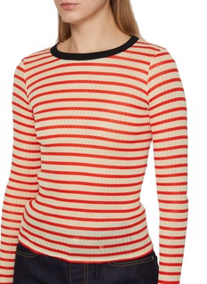 Infused with LA FETICHE’s playful spirit, this striped cotton knit top features fiery red lines against a neutral base, finished with a contrasting black neckline. Its slim silhouette makes it an effortless layering piece—perfect under a blazer, or styled solo with high-rise denim.
