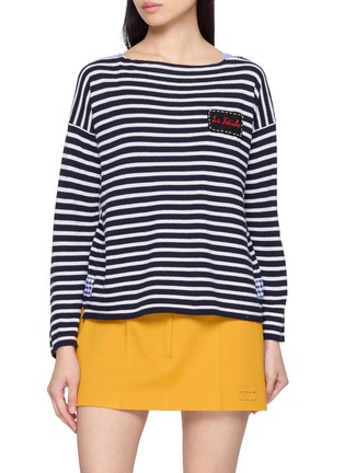 A Parisian staple reworked with playful precision, this striped sweater by LA FETICHE balances nautical ease with artisanal charm. Gingham accents peek through the seams, while a hand-embroidered logo patch adds a witty signature—perfect with tailoring or denim for off-duty polish.
