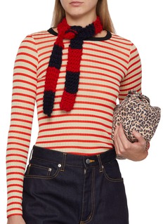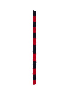 Hand-knitted with bold red and navy stripes, the Quentin skinny scarf from LA FETICHE lends a playful yet artisanal accent to any outfit. Its elongated, narrow shape offers endless styling versatility—wrap it as a necktie, hair accessory, or belt for a statement finish.