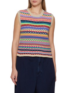 Imbue a feminine touch into your knitwear collection with LA FETICHE's Sarah vest. Knit in premium lambswool and decorated with a graphic fair isle pattern, this piece elevates any look with its infectiously charming appeal.