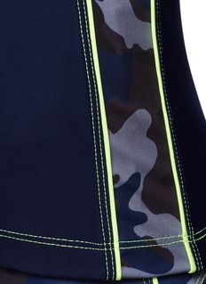 以伦敦为基地的运动服饰品牌LAAIN采用优质面料,结合细致舒适的剪裁,为女性打造时尚单品。这款背心以深蓝色为主调,两侧拼接迷彩印花,透出中性硬朗格调。沿边加入夺目的荧光黄色点缀,让您的造型更精神醒目。