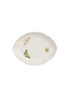 Transform your dining experience with the enchanting charm of Laboratorio Paravicini's ceramic plate. This exquisite piece showcases delicate butterfly motifs decorated by hand to capture the ethereal beauty of nature. Crafted in Italy, the plate features a classic oval shape with subtly scalloped edges, adding a touch of elegance to any table setting.