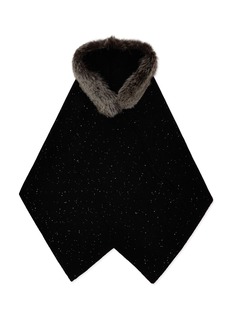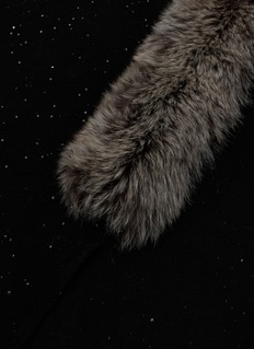 Evoking the elegance of winter nights, this knitted shawl is crafted from a luxurious wool and cashmere blend embellished with subtle sequins that shimmer like scattered stars. Trimmed with a plush fox fur collar, it lends an opulent touch to eveningwear or layered cold-weather ensembles.