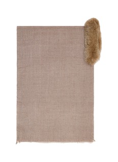 An ode to refined craftsmanship, Lane’s shawl features a subtle herringbone weave enriched with gold-toned bead accents. The design is finished with a luxuriously soft fox fur collar and lightly fringed hem, bringing warmth and opulence to cold-weather dressing.
