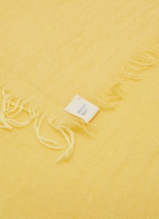 Infused with the vitality of a summer morning, this lemon yellow shawl brings optimism to minimalist codes. Woven in a fine twill of modal, silk, and cashmere, it lends luminous softness—perfect for layering over warm-weather tailoring or resortwear.