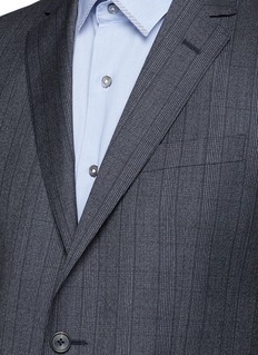 一套款式简约、剪裁精准的西服套装是摩登绅士衣橱的必备品。浪凡这款采用优质羊毛面料打造,由深浅蓝色构成格纹,贯彻整体内敛优雅风范,适合出席任何正式场合。
