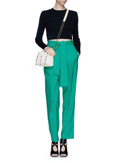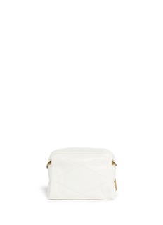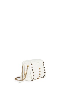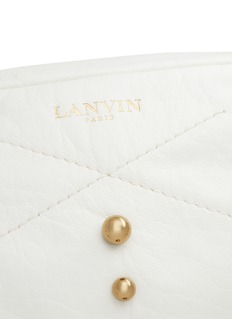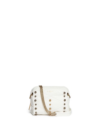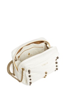 浪凡这款小巧的肩挎包选用纯洁的白色主调,方形设计简约实用,以优质真皮打造,质感柔软而且极其耐用,表面加上简单的交叉绗缝图案及大小不一的圆珠装饰,透出一丝朋克感,让您成为街头最亮眼的时尚先锋。
