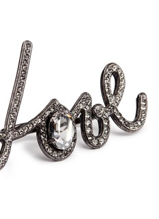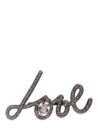浪凡的字母饰物已经成为品牌经典系列之一,这款戒指以简约流畅的线条打造出“Love”字样,灰黑色黄铜与透明仿水晶点缀令设计更为亮丽炫目,无论是酷感都市女性还是优雅少女,都可搭配出自我个性。