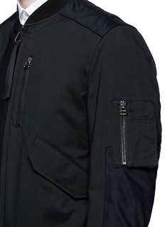 棒球夹克是打造酷感造型的最佳搭档。浪凡此款采用纯黑设计,衣袖加入牛皮拼接透出硬朗朋克感,绗缝设计结合夹棉填充,令廓形利落而不臃肿,让您轻松展现温暖时尚的帅气。