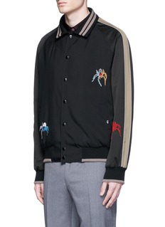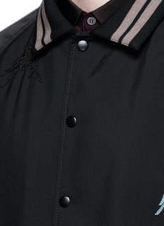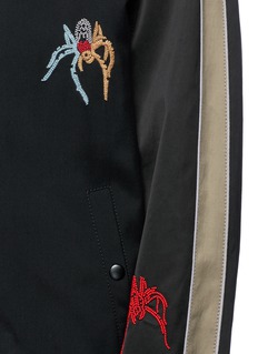 浪凡以幽默风格改良大热棒球夹克,正面、袖子及背面以彩色珠饰和刺绣构成本季主打的蜘蛛装饰,生动新颖。质感厚实的面料具有良好的保暖性,配合精湛剪裁,令您在秋冬季节依然保持帅气硬朗的型男风范。