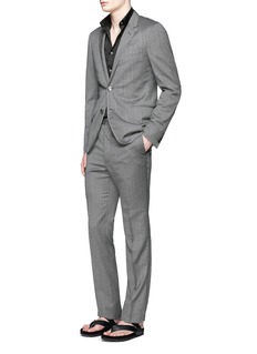 浪凡这款西服外套相对于传统经典款式多添了一份时尚玩味。保留了精细做工与利落修身剪裁,加入细竖纹、车缝线、手肘拼贴等细节,展示摩登男士的活力一面,当中又以银色雕花钮扣最为吸睛,自细节处透出优雅高贵气场。