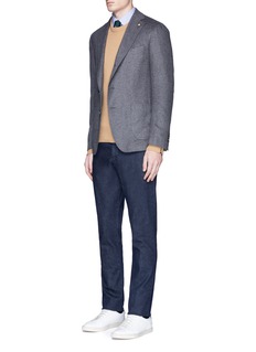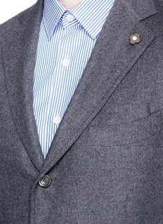 Lardini素来以出众品质引人注目,此款西服外套选用丝与羊绒面料打造出极致柔软质感,秋冬穿上格外温暖轻盈,领口小小的花卉领扣点亮了整体设计,配以称身利落剪裁,烘托出您成熟稳重一面。