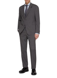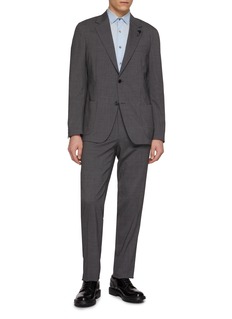 Merging tailoring finesse with performance comfort, this easy-wear suit from Lardini is cut from a lightweight poly-wool blend enhanced with stretch. The softly structured blazer pairs with tailored trousers featuring an elasticated waistband for flexibility — a modern expression of elegance for business travel or smart-casual days.