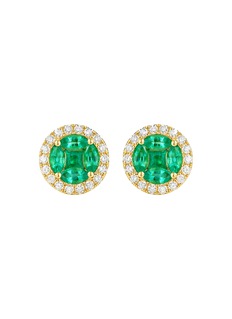 Vivid emeralds are framed by a radiant diamond halo, capturing light with every movement. Crafted in 18K yellow gold, this timeless pair brings refined brilliance to both everyday elegance and evening occasions, offering a classic yet luminous statement.