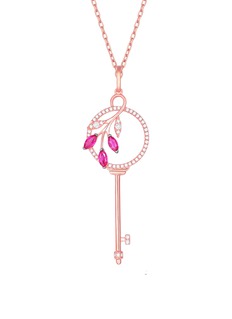 Symbolic and softly romantic, this pendant reimagines a key silhouette adorned with marquise-cut rubies and a delicate diamond-traced circle. Crafted in warm 18K rose gold, it brings poetic sparkle to everyday looks while lending meaning and elegance to evening wear.
