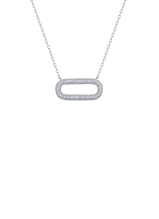 Defined by clean geometry, this 18K white gold necklace features an elongated oval pendant fully pavé-set with brilliant diamonds. Sleek yet radiant, it sits elegantly at the collarbone, lending understated sparkle to both everyday layers and evening looks.