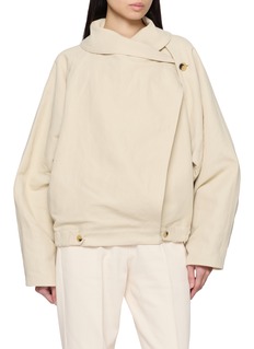 LE17SEPTEMBRE 极简主义版型和创意富有层次感的细节,实现舒适和平衡。这款夹克用围裹剪裁强化造型感,廓形宽松兼顾舒适,纽扣细节藏着简约巧思,浅色调适配多风格,是秋冬衣橱的质感单品。