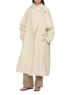 LE17SEPTEMBRE 极简主义版型和创意富有层次感的细节,实现舒适和平衡。这款大衣用围裹剪裁强化造型感,廓形宽松兼顾舒适,木质抽绳扣细节藏着简约巧思,浅色调适配多风格,是秋冬衣橱的质感单品。