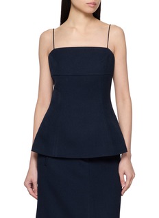 LE17SEPTEMBRE 极简主义版型和创意富有层次感的细节,实现舒适和平衡。这款上衣采用挺阔的面料勾勒收腰版型,纤细的肩带刻画优雅的方领廓形,搭配同系列半身裙带来都市气质着装。