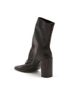 受手套柔韧质感的启发,LEMAIRE 手套系列呈现出柔美而自信的风格。这款高跟短靴采用光滑皮革精心打造,材质细腻且富有光泽。