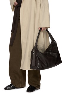 LEMAIRE 这款包采用细腻皮革制成,优雅闪亮。灵感来自流浪包款,配有带缝制衬垫的肩带。结构轻盈柔软,底部有加固衬里。双针扣和 D 形环增添了实用魅力,内部配有拉链口袋带来功能分区,可放置钥匙或饰物等。