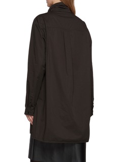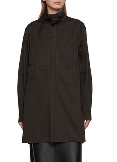 LEMAIRE 着重于日常生活设计的百搭单品,以实用主义构筑浪漫诗意。这款衬衫仅以领口系带和胸前口袋缝线的线条勾勒宁静气质,传递出品牌对日常穿搭的细腻感知。