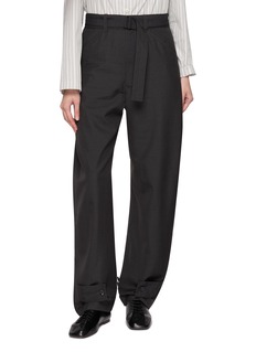 LEMAIRE 着重于日常生活设计的百搭单品,以实用主义构筑浪漫诗意。这款长裤采用质感面料勾勒弧形裤腿,裤脚饰有扣带设计,轻松搭配紧身上衣和气质大衣。