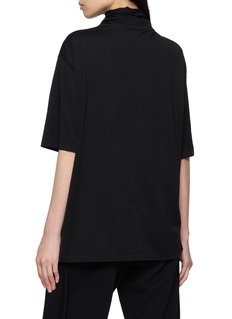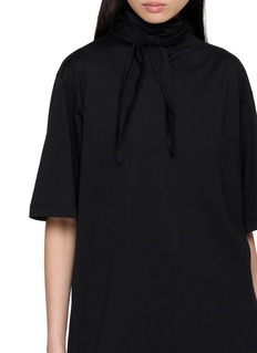 LEMAIRE 继续探索解构与重组的可能性,通过错落有致的层次感与建筑般的立体裁剪,呈现摩登都会美学。这款 T 恤以飘带领结柔化颈部轮廓,垂坠面料传递舒适调性,宽松版型兼顾随性与利落。
