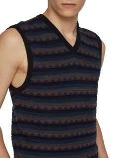 LEMAIRE 继续探索解构与重组的可能性,通过错落有致的层次感与建筑般的立体裁剪,呈现摩登都会美学。这款背心以柔软羊毛混纺面料和细腻的织脚勾勒日常气质。