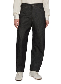 LEMAIRE 这款工装牛仔裤采用纯棉面料匠心打造,呈现挺括质感与粗犷风格。裤管结构略带扭转设计,增强立体轮廓与动态感,展现品牌一贯的实用主义美学。