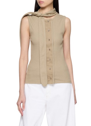 LEMAIRE 继续探索解构与重组的可能性,通过错落有致的层次感与建筑般的立体裁剪,呈现摩登都会美学。这款上衣以飘带柔化肩颈轮廓,半开襟设计强化层次感,修身版型兼顾随性与利落。
