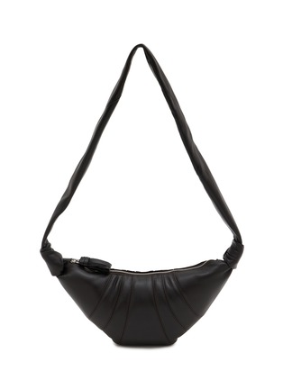 LEMAIRE 这款包属于经典的 Croissant 系列,灵感来自羊角面包糕点的形状。其采用细腻的纳帕皮革材质,触感与光泽感达到微妙平衡,恰好包裹身体的形状和俏皮的环形拉链头,赋予单品休闲摩登韵味。