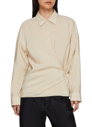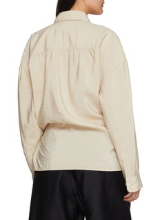 LEMAIRE 继续探索解构与重组的可能性,通过错落有致的层次感与建筑般的立体裁剪,呈现摩登都会美学。这款衬衫以扭结解构衣身层次,翻领设计强化辨识度,微皱光泽面料兼顾舒适与利落。