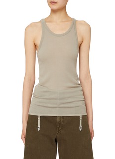 LEMAIRE 着重于日常生活设计的百搭单品,以实用主义构筑浪漫诗意。这款背心采用羊毛罗纹面料带来实用穿着感,吊带下摆可连接丝袜,打造兼具未来感的时尚穿搭。