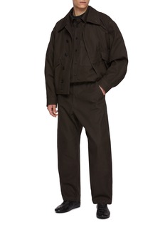 LEMAIRE 继续探索解构与重组的可能性,通过错落有致的层次感与建筑般的立体裁剪,呈现摩登都会美学。这款长裤以纯棉面料勾勒弯刀廓形,后腰带设计和腰袢带细节带来都市古朴格调,展露个性简约时尚。