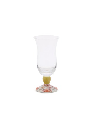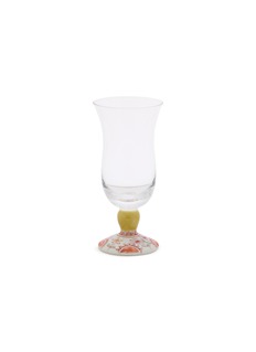 Delight in the refined simplicity of this elegant sake glass, designed to enhance the enjoyment of your favourite Japanese rice wine. The glass features a clear, sleek design that allows the colour and clarity of the sake to shine through, complemented by a beautifully crafted stem with a subtle yellow hue and a floral-patterned base.