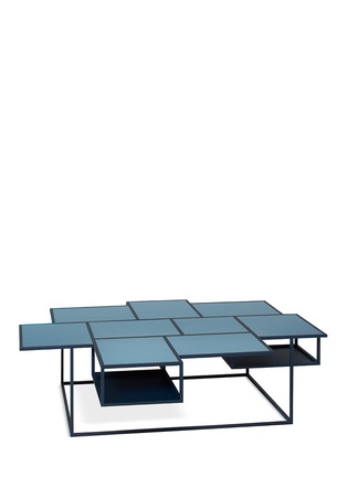 LINTELOO这款Vanity咖啡桌由荷兰设计师Roderick Vos创作,以哑炭灰色框架打造出独特有趣的外形,并由多个长方及正方形拼凑成不规则台面,尤其适合摆放喜爱的杂志及书籍,配合银蓝绿色镜面玻璃,可以反照出更宽广的室内空间,现代风家居爱好者绝对不容错过。