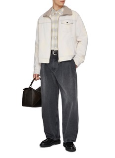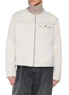 LOEWE's reversible jacket features a ribbed knit funnel neck, zip-through closure, and button-flap chest pocket with welt hand pockets. The versatile two-in-one design offers contrasting styling options in a relaxed fit. A sophisticated layering essential that seamlessly transitions across seasons and occasions.