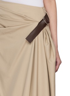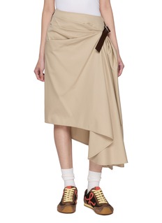 LOEWE 以极简现代风格诠释通勤美学,这款半身裙用质感面料营造柔和质感,单侧扭褶与不对称下摆添灵动细节,腰带点缀强化比例。