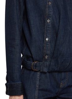 自诞生之日起,LOEWE 便将精湛的手工艺、坚定的探索发展和优质皮革制作经验视为品牌基石。这款牛仔夹克以非对称剪裁打破日常,系带下摆和袖口处的细节融入手工艺格调,后背 LOGO 标识低调点亮品牌辨识度。